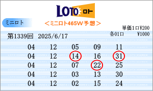 | 6月17日第1339回を狙う予測数字は、斜線成立数字と出現間隔の中から、「03」・「04」・「08」・「12」・「13」・「14」・「17」・「19」・「20」・「22」・「24」・「25」・「27」・「28」・「29」となりました。1338回からの連続数字は、「13」と「28」を軸数字に。高確率数字は「22」と「25」を軸数字に。低確率数字は、「03」と「19」を軸数字に選びました。それぞれ5口の買い目はミニロトパーフェクトデータからの相性数字で組み立てました。同じ段数での斜線交差数字は「02」・「26」、ボーナス数字同士の斜線数字はありません。 |