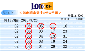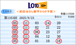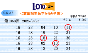 9月23日第1353回を狙う予測数字は、斜線成立数字と出現間隔の中から、「02」・「04」・「05」・「06」・「07」・「09」・「11」・「12」・「14」・「16」・「19」・「22」・「24」・「28」・「30」となりました。1352回からの連続数字は、「05」と「11」を軸数字に。高確率数字は、「16」と「28」を軸数字に。低確率数字は、「02」と「06」を軸数字に選びました。それぞれ5口の買い目はミニロトパーフェクトデータからの相性数字で組み立てました。同じ段数での斜線交差数字は「08」・「25」・「31」。ボーナス数字同士の斜線数字はありません。 |