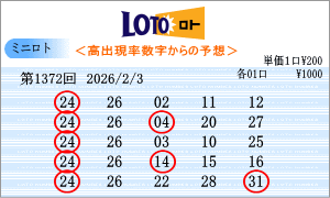 | 2月3日第1372回を狙う予測数字は、斜線成立数字と出現間隔の中から、「02」・「04」・「07」・「09」・「10」・「13」・「17」・「19」・「20」・「21」・「23」・「24」・「26」・「28」・「30」となりました。1371回からの連続数字は、「10」と「20」を軸数字に。高確率数字は、「24」と「26」を軸数字に。低確率数字は、「09」と「19」を軸数字に選びました。それぞれ5口の買い目はミニロトパーフェクトデータからの相性数字で組み立てました。同じ段数での斜線交差数字は「03」・「08」・「17」、ボーナス数字同士の斜線数字は「23」と「28」。 |
