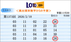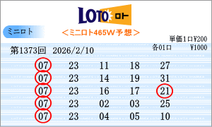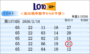 | 2月10日第1373回を狙う予測数字は、斜線成立数字と出現間隔の中から、「03」・「05」・「07」・「11」・「13」・「15」・「17」・「20」・「21」・「22」・「23」・「24」・「25」・「27」・「30」となりました。1372回からの連続数字は、「21」と「24」を軸数字に。高確率数字は、「03」と「11」を軸数字に。低確率数字は、「05」と「22」を軸数字に選びました。それぞれ5口の買い目はミニロトパーフェクトデータからの相性数字で組み立てました。同じ段数での斜線交差数字は「07」、ボーナス数字同士の斜線数字は「06」。 |