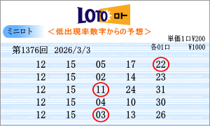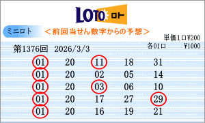 | 3月3日第1376回を狙う予測数字は、斜線成立数字と出現間隔の中から、「01」・「02」・「04」・「08」・「10」・「12」・「14」・「15」・「17」・「19」・「20」・「21」・「23」・「24」・「28」となりました。1375回からの連続数字は、「01」と「20」を軸数字に。高確率数字は、「19」と「21」を軸数字に。低確率数字は、「12」と「15」を軸数字に選びました。それぞれ5口の買い目はミニロトパーフェクトデータからの相性数字で組み立てました。同じ段数での斜線交差数字は「18」・「30」、ボーナス数字同士の斜線数字は「16」です。 |